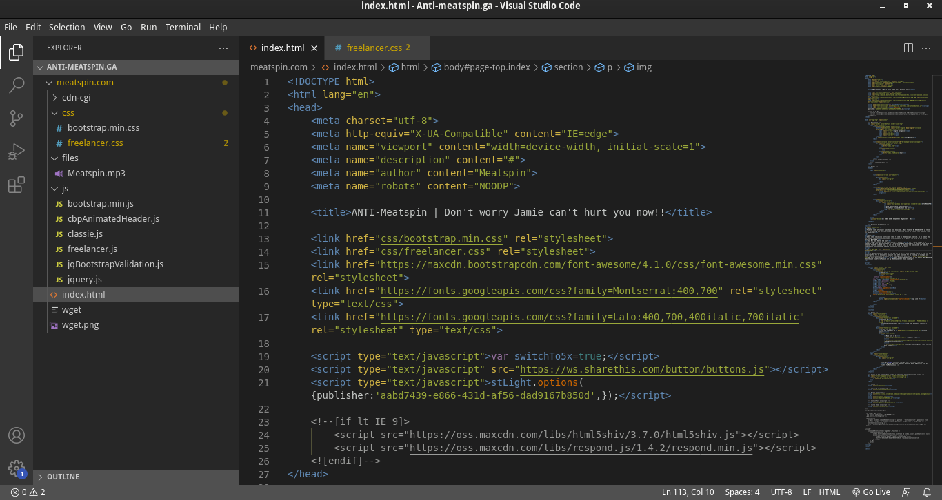 Once you have stared at html css and javascript for far to many years you just know what too look for ie tracking id's images and music (yes there was code for music to be playing in the backround The weird music playing ). Then I obtained the rights to the domain ANTI-MEATSPIN then through Cloudflare Pages I set up CNAMES and that whole shabang!!!